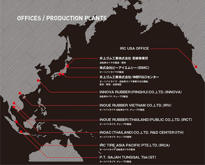 Được thành lập vào năm 1926 tại Nhật Bản, IRC Tire với những chuyên gia lốp xe hai bánh toàn cầu IRC đã có hơn 90 năm kinh nghiệm phát triển và sản xuất lốp xe đạp cho tất cả các loại xe đạp đua, đường trường, địa hình, leo núi. Hiện IRC sở hữu nhiều nhà máy sản xuất trên toàn thế giới nhằm cung cấp sản xuất lốp xe đạp, xe máy và xe lăn.